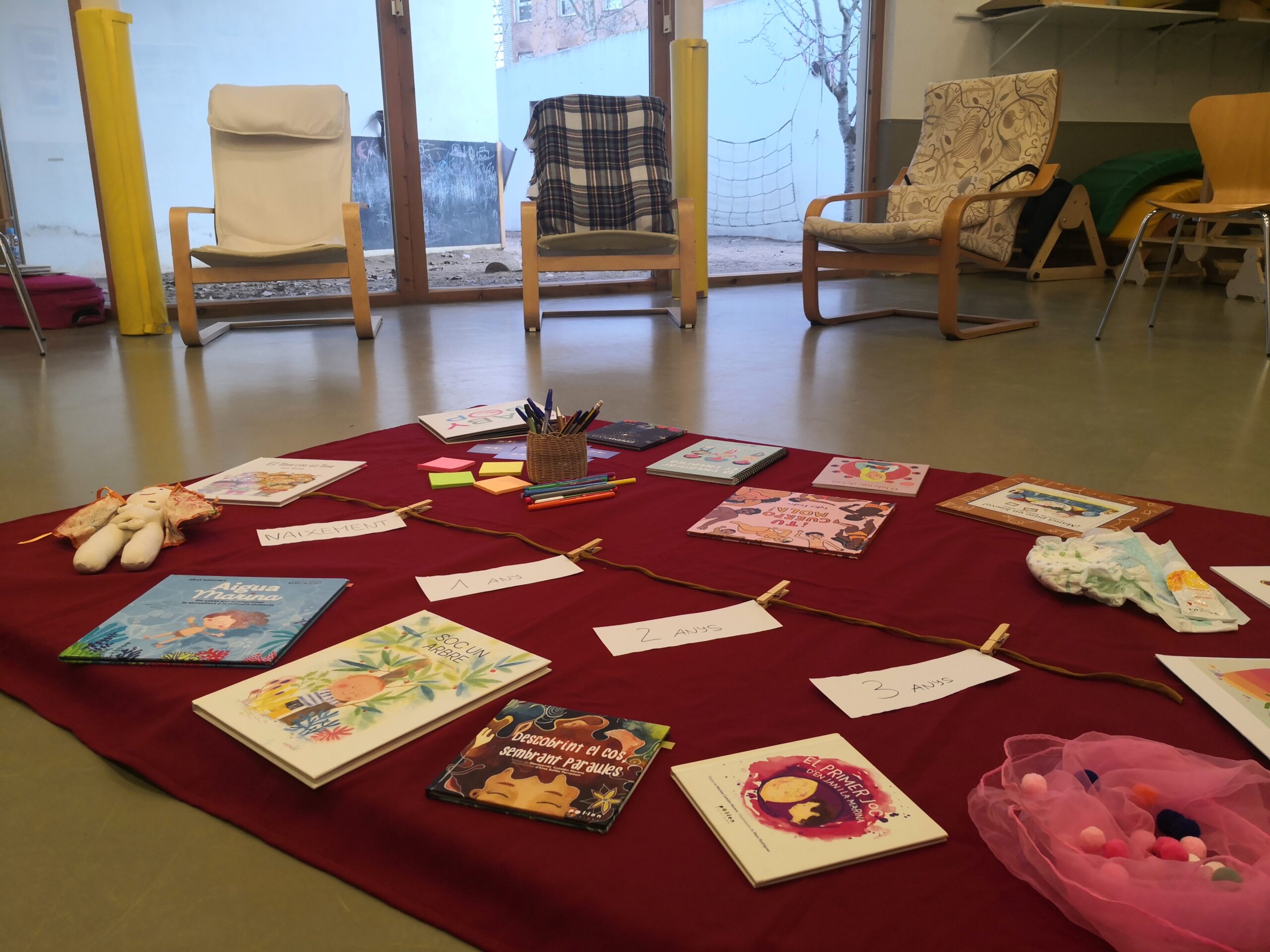 Per fer-ho proposo tallers dinàmics i diferents on parlem de les sexualitats des de les emocions, l’autoconeixement dels nostres cossos, l’autobiografia, els límits i la comunicació, els mandats de gènere, i el model de sexualitat que tenim, entre altres. Per fer-ho utilitzo diferents materials (objectes, imatges, vídeos, llibres…) en funció de les característiques de les destinatàries del taller. Com que l’oferta va des dels 10 anys (5è de primària) fins l’edat adulta, els continguts, la metodologia i els objectius de cada taller varien en funció del grup.